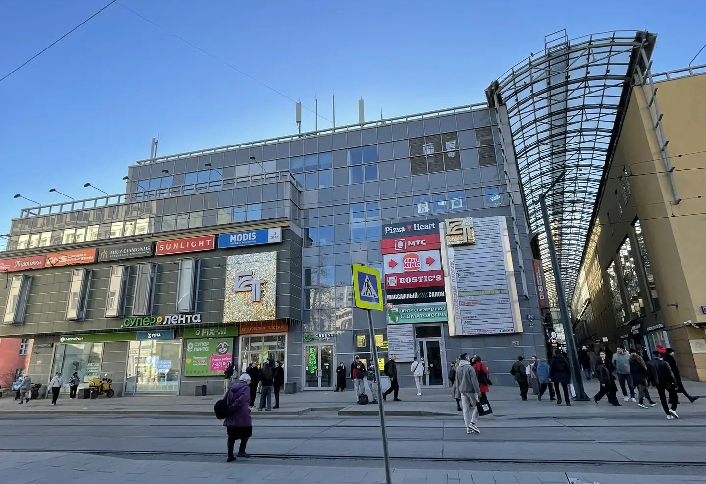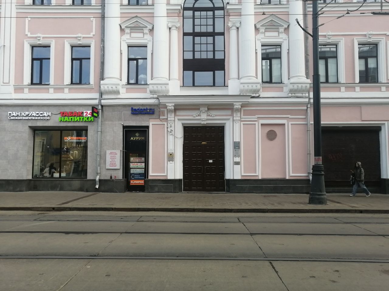Вход находится рядом с магазинами «Табак, напитки 24/7» и «Пан Круассан». На двери написано 2 подъезд.
