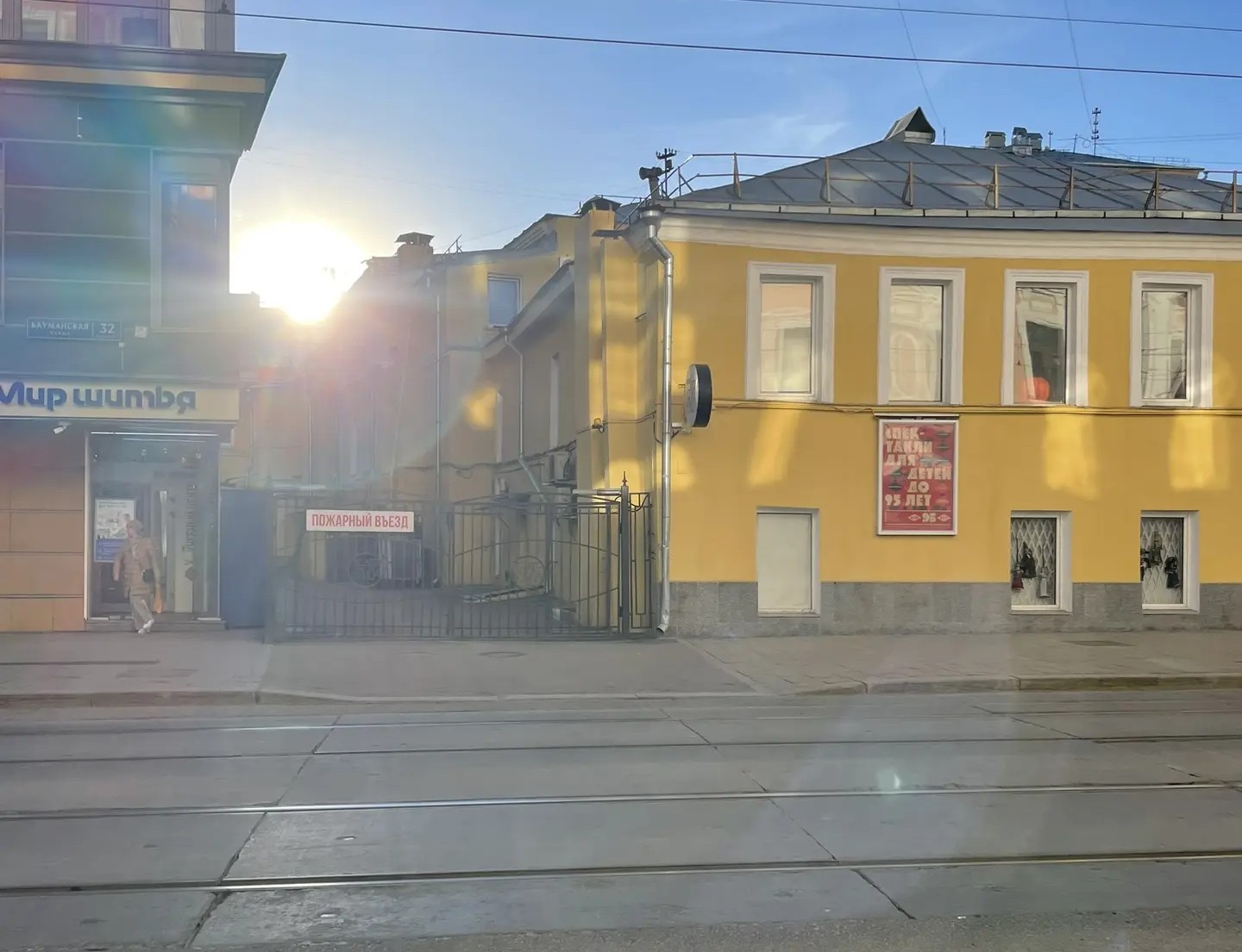 Это вы видите, как только выходите из метро, вам нужно повернуть направо, и идти по Бауманской улице так, чтобы трамвайные пути были по левую руку: