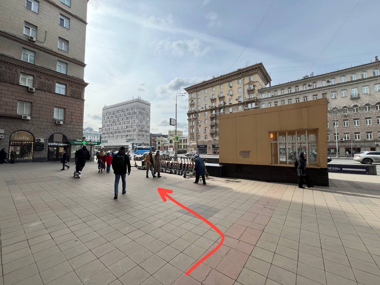 Поднялись по эскалатору, вышли из метро и сразу поворачиваем налево