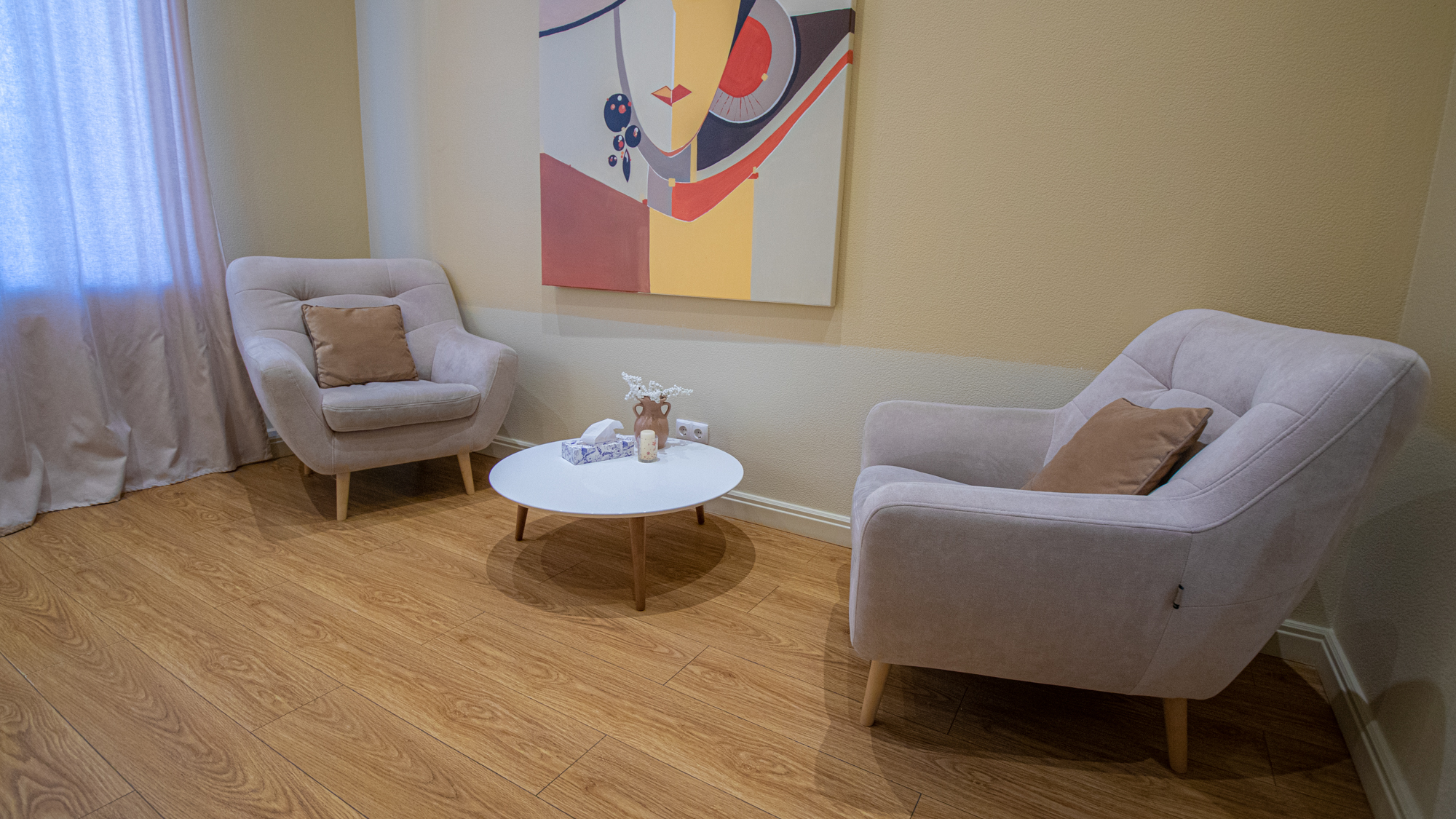 Преимущества нашего кабинета «Кофейный»: В кабинете расположены два мягких,0 комфортных кресла, журнальный столик. Для создания расслабляющей обстановки, способствующей раскрепощению во время приема в кабинете имеется торшер.