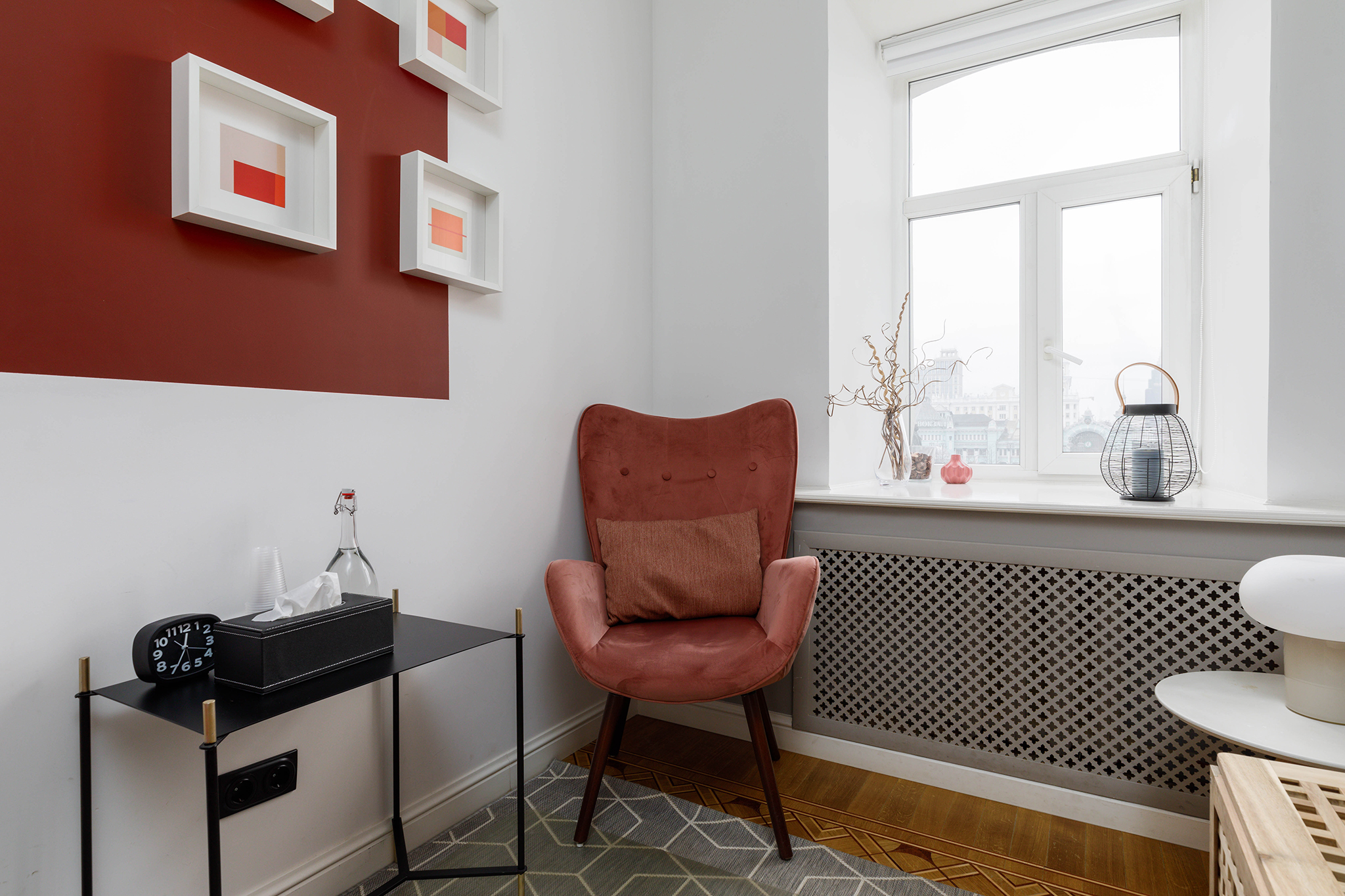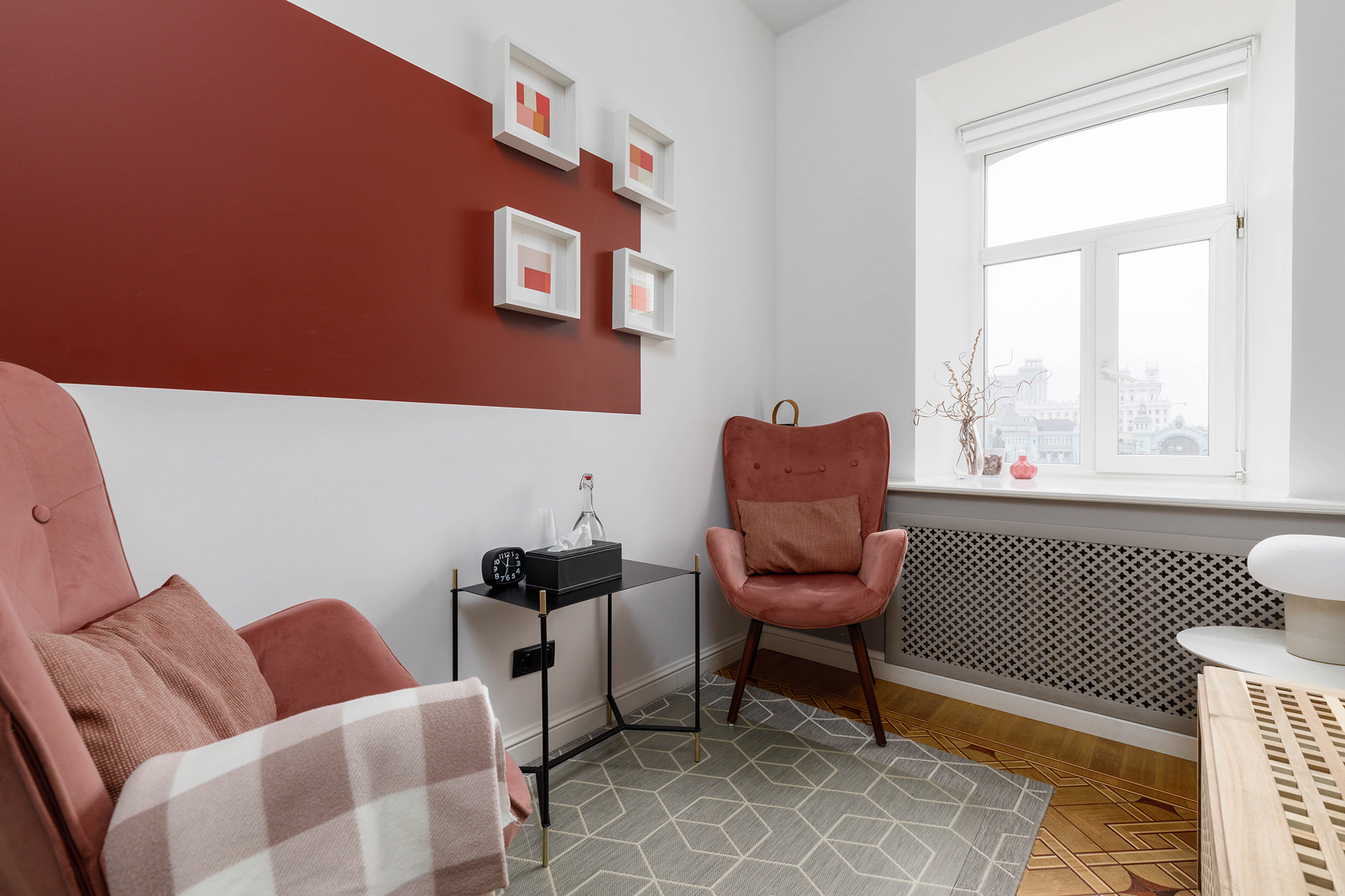 Кабинет предназначен для проведения индивидуальных консультаций, телесно-ориентированной психотерапии и массажа до 3-х человек.