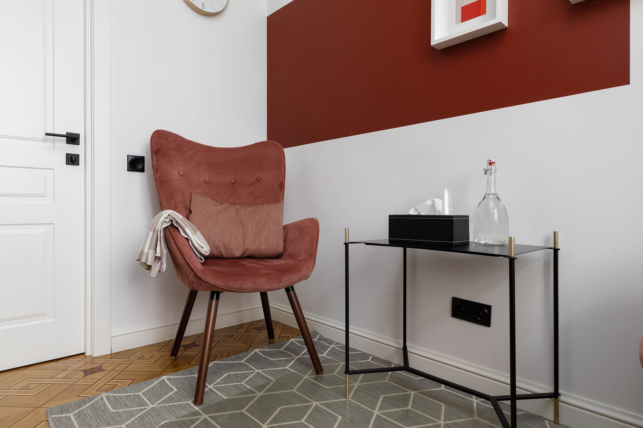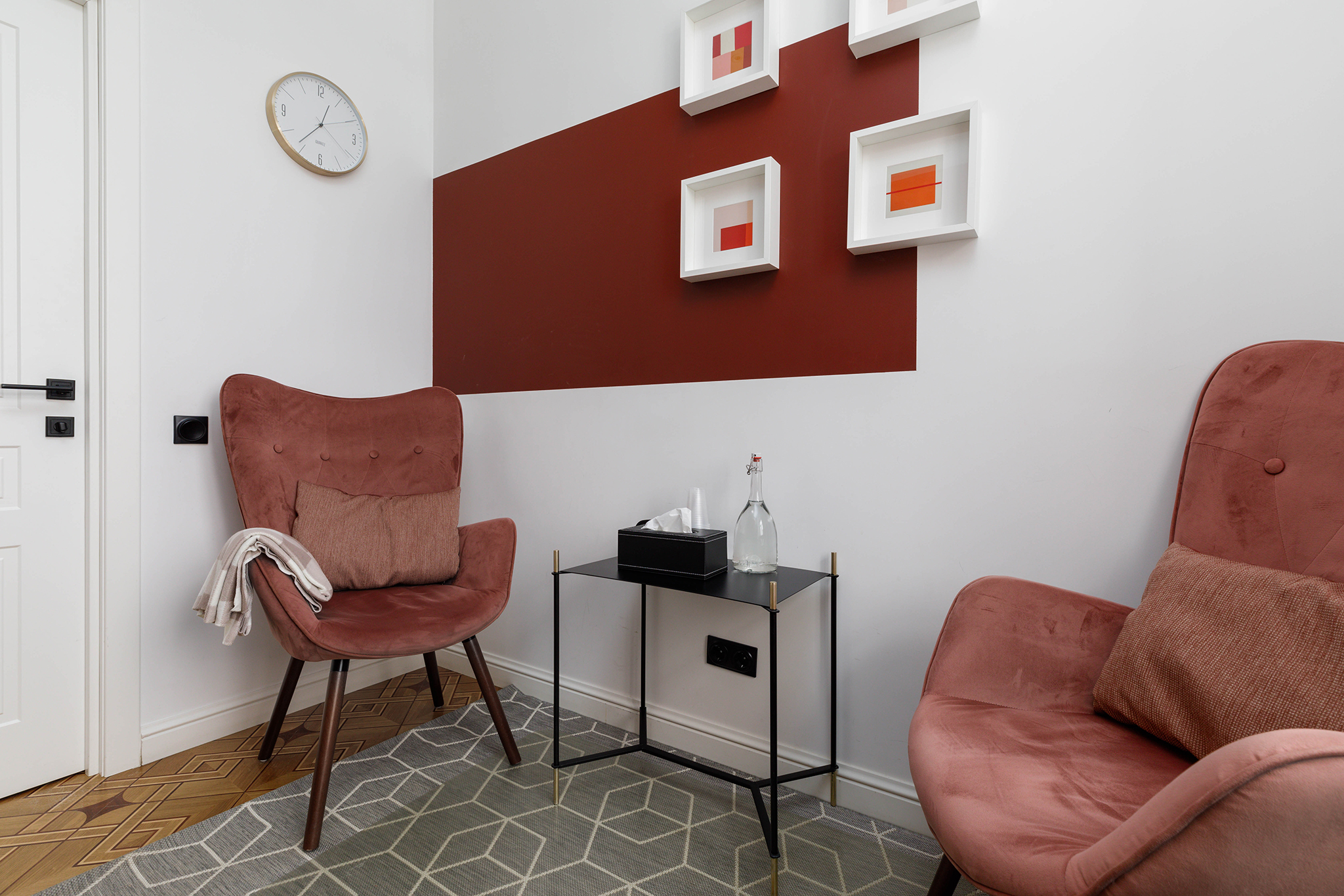 Общая цветовая гамма обстановки выдержана в современных интерьерных решениях. В данном кабинете приятно находиться. Стильное, гармоничное и комфортное помещение создает доверительную, свободную обстановку. Поэтому посетитель, который пришел на прием к психологу, уверенно и спокойно может обсудить все существующие проблемы.
