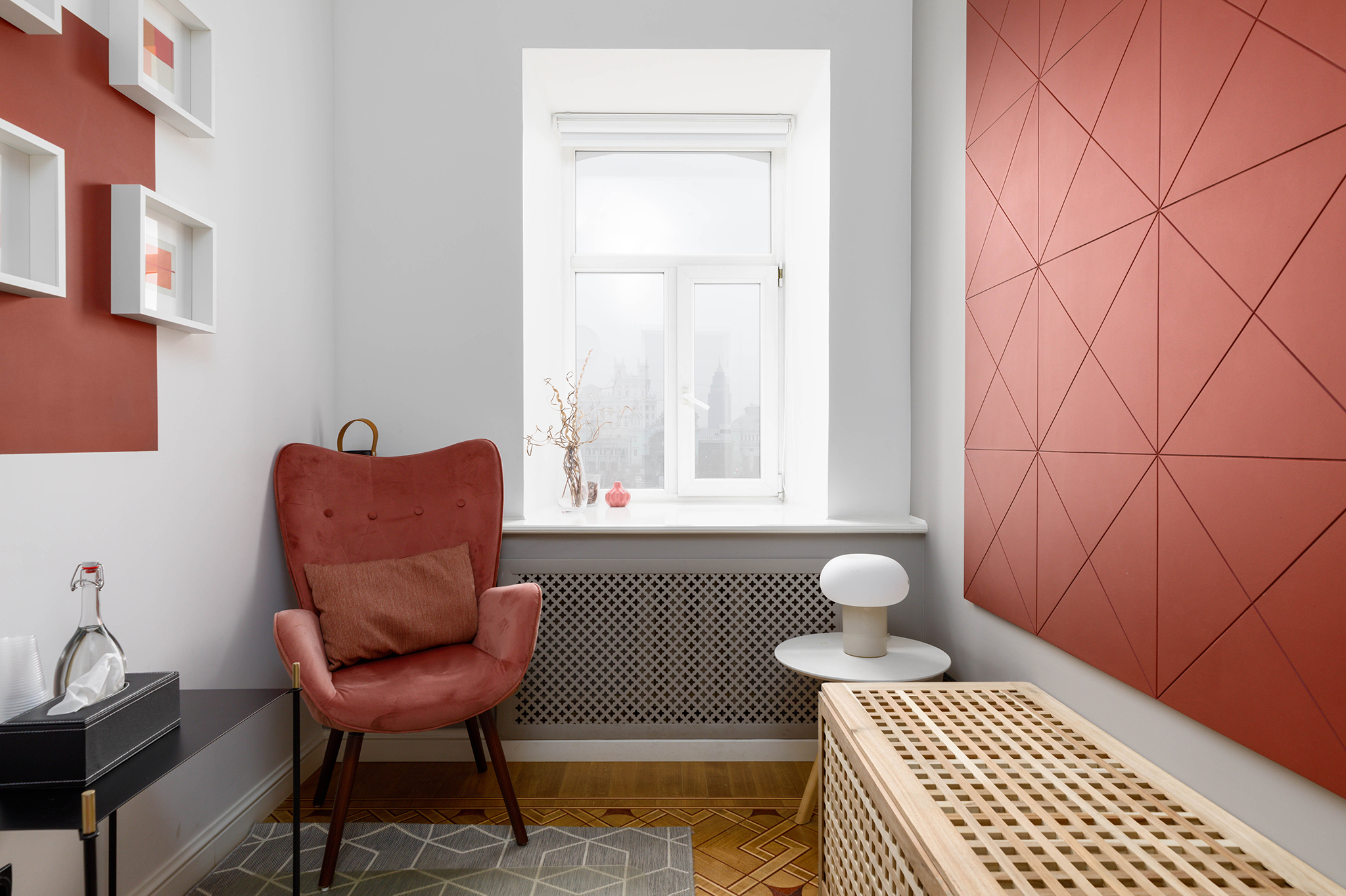 Кабинет предназначен для проведения детских и индивидуальных консультаций, телесно-ориентированной психотерапии и массажа до 3-х человек.