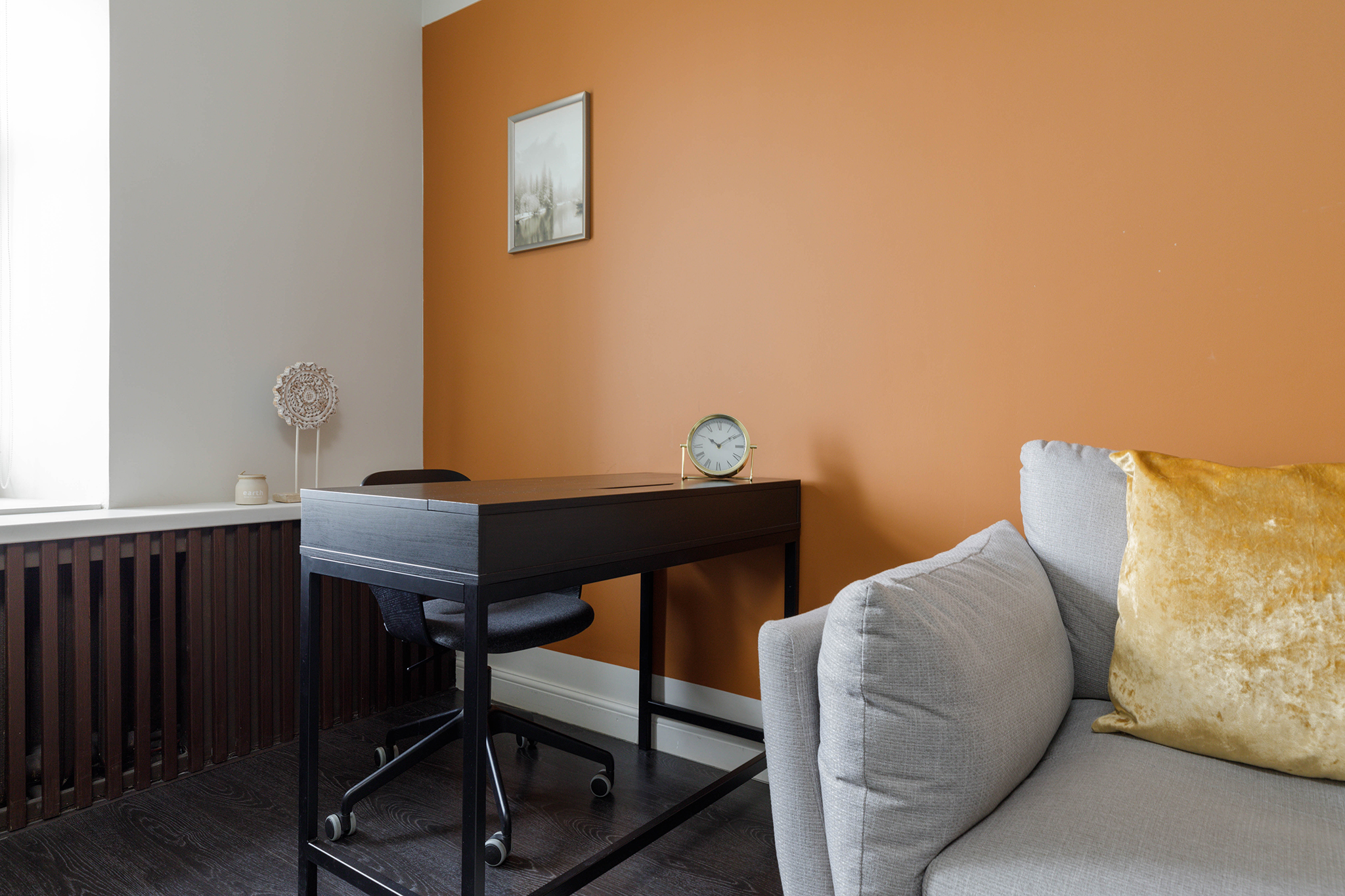 В кабинете представлены рабочий стол и стул. Общая цветовая гамма обстановки выдержана в постельных тонах, что делает кабинет максимально комфортным и создает доверительную и свободную обстановку, что дает посетителю, который пришел на прием к психологу, уверенно и спокойно обсудить все существующие проблемы.