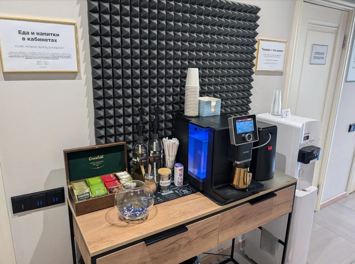 Кофе-зона для клиентов с бесплатным чаем, кофе и печеньем ☕