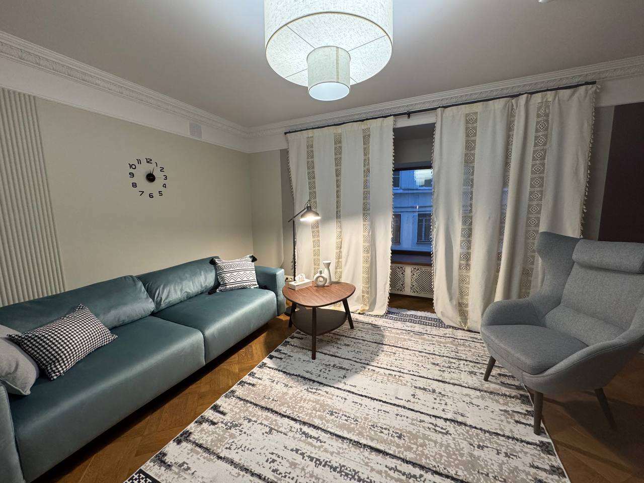 окном, выходящим во двор, кондиционером, вместительным диваном и креслом, кабинет