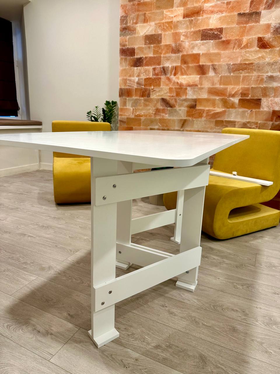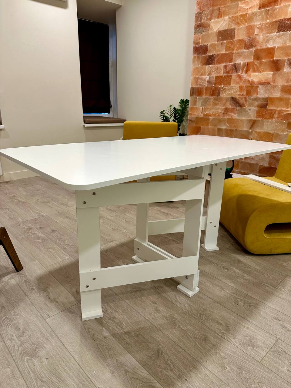 Стол 146х70х77 см., за которым свободно помещаются до 8-ми человек.