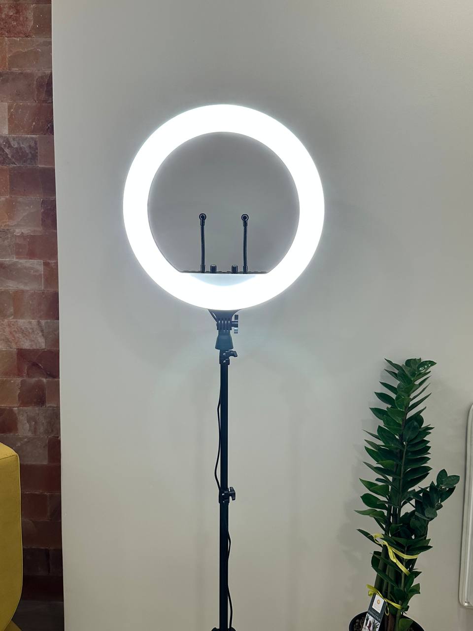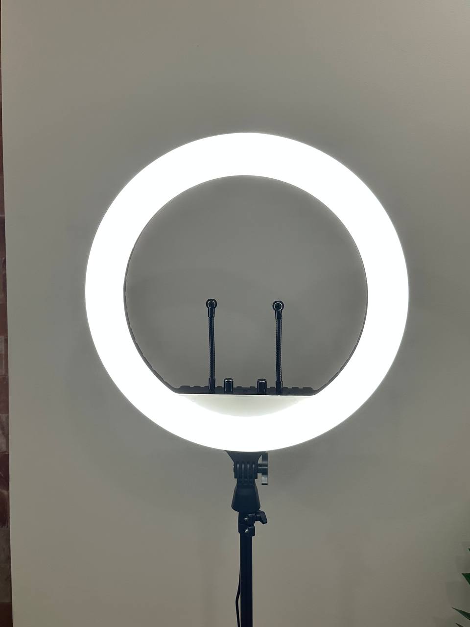 Кольцевая лампа со штативом и тремя режимами освещения - теплый, холодный и нейтральный. Эта функция позволяет снимать видео в разное время. Диаметр 33 см.