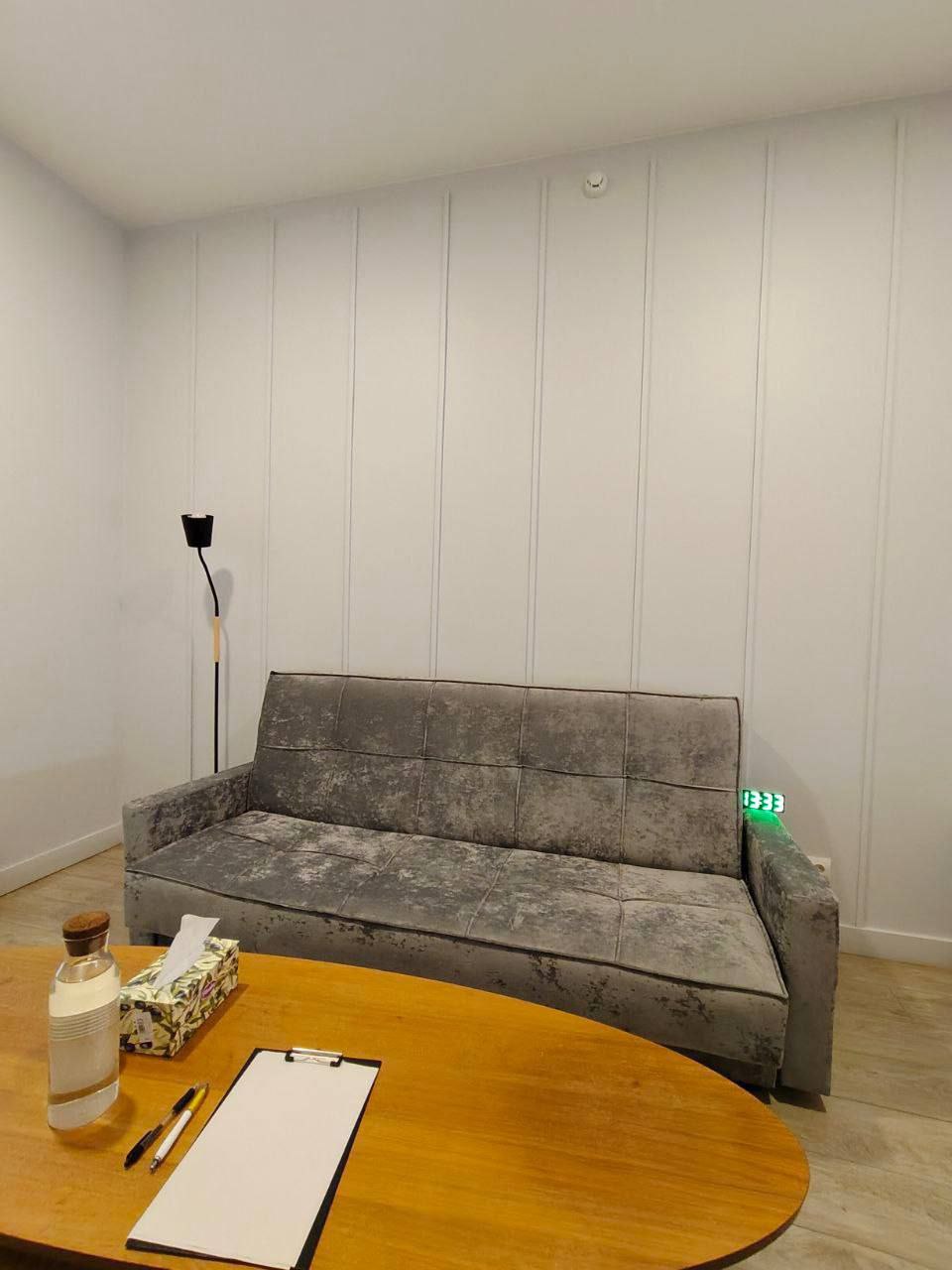 Просторный кабинет, выполненный в пастельном, голубом оттенке. Оборудован диваном, удобным креслом, детским столиком и стульчиком и кондиционером. По запросу мы предоставим детский мольберт для арт- терапии. Большой стол подойдет для образных техник и работы с Мак картами. Возможна регулировка освещения.
