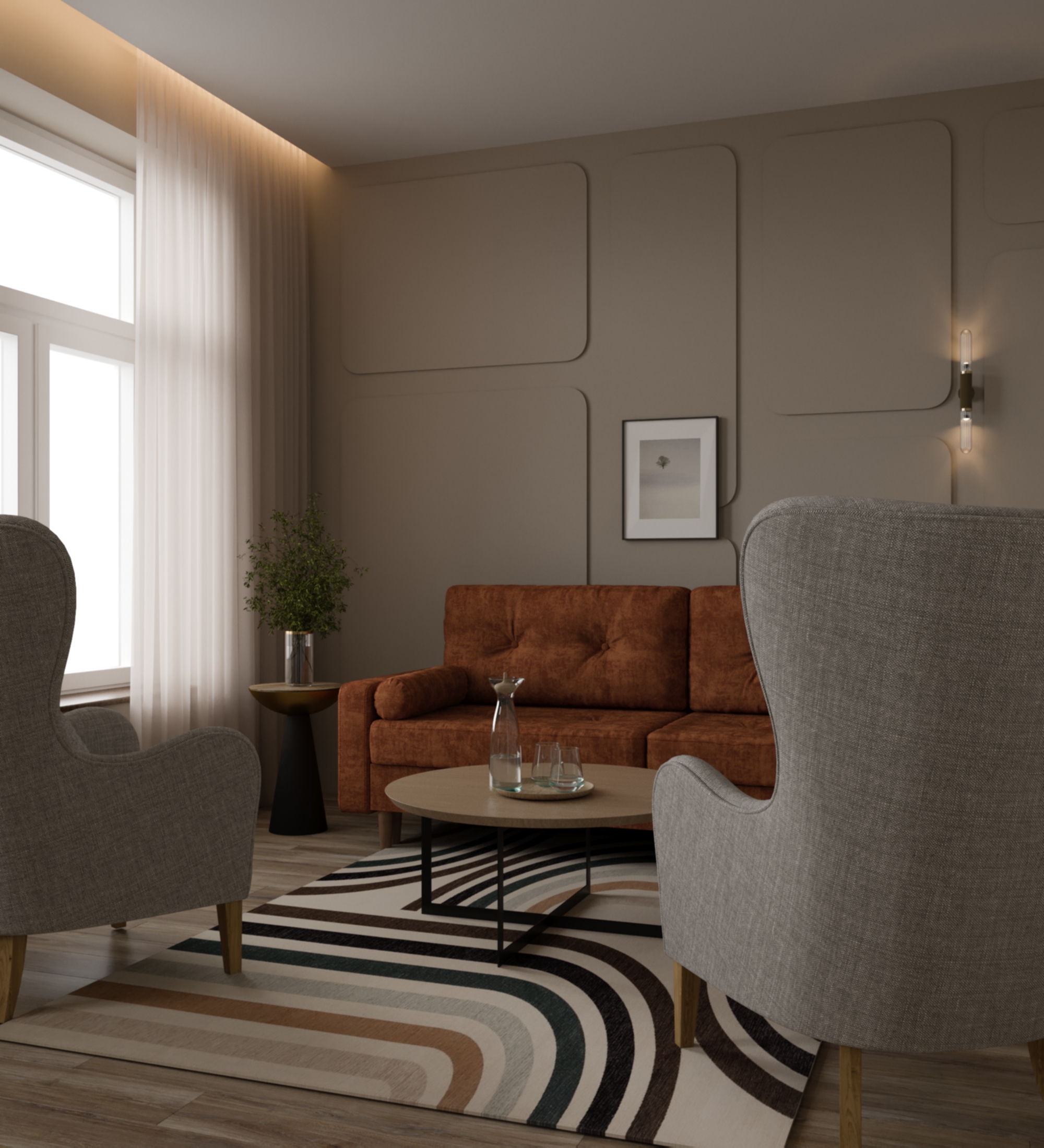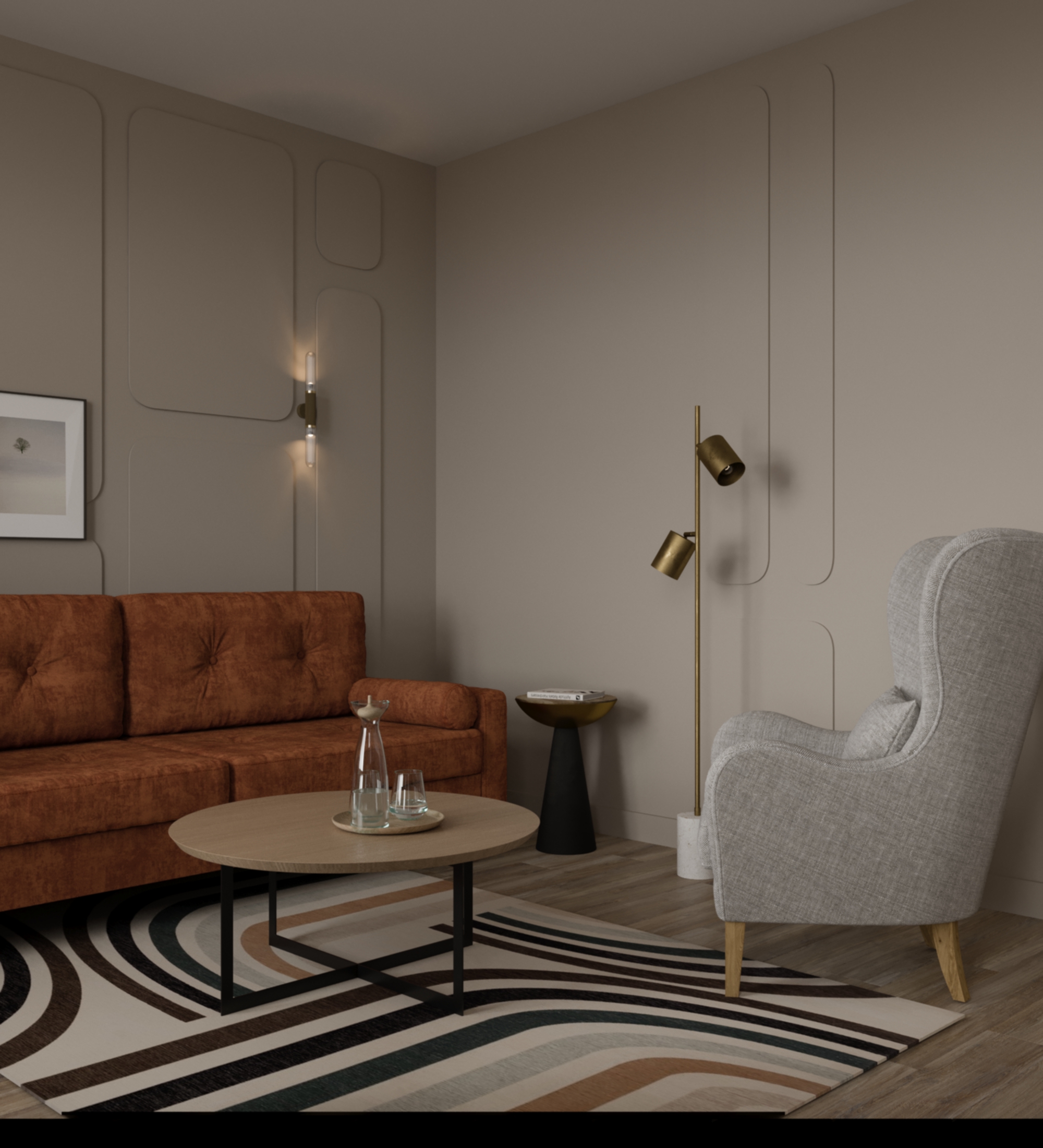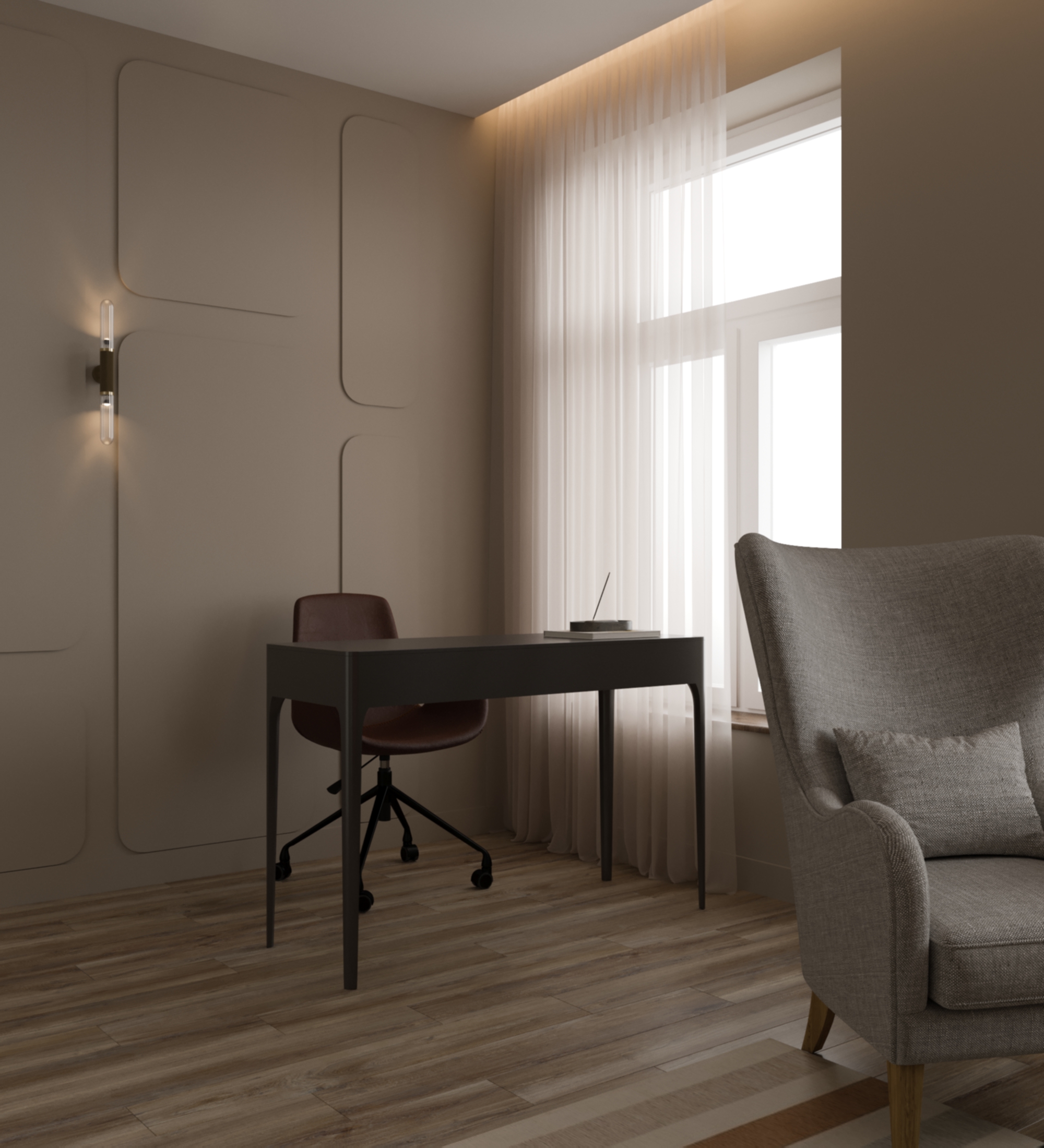 бежевый кабинет, с натуральными, природными оттенками, умиротворяющей