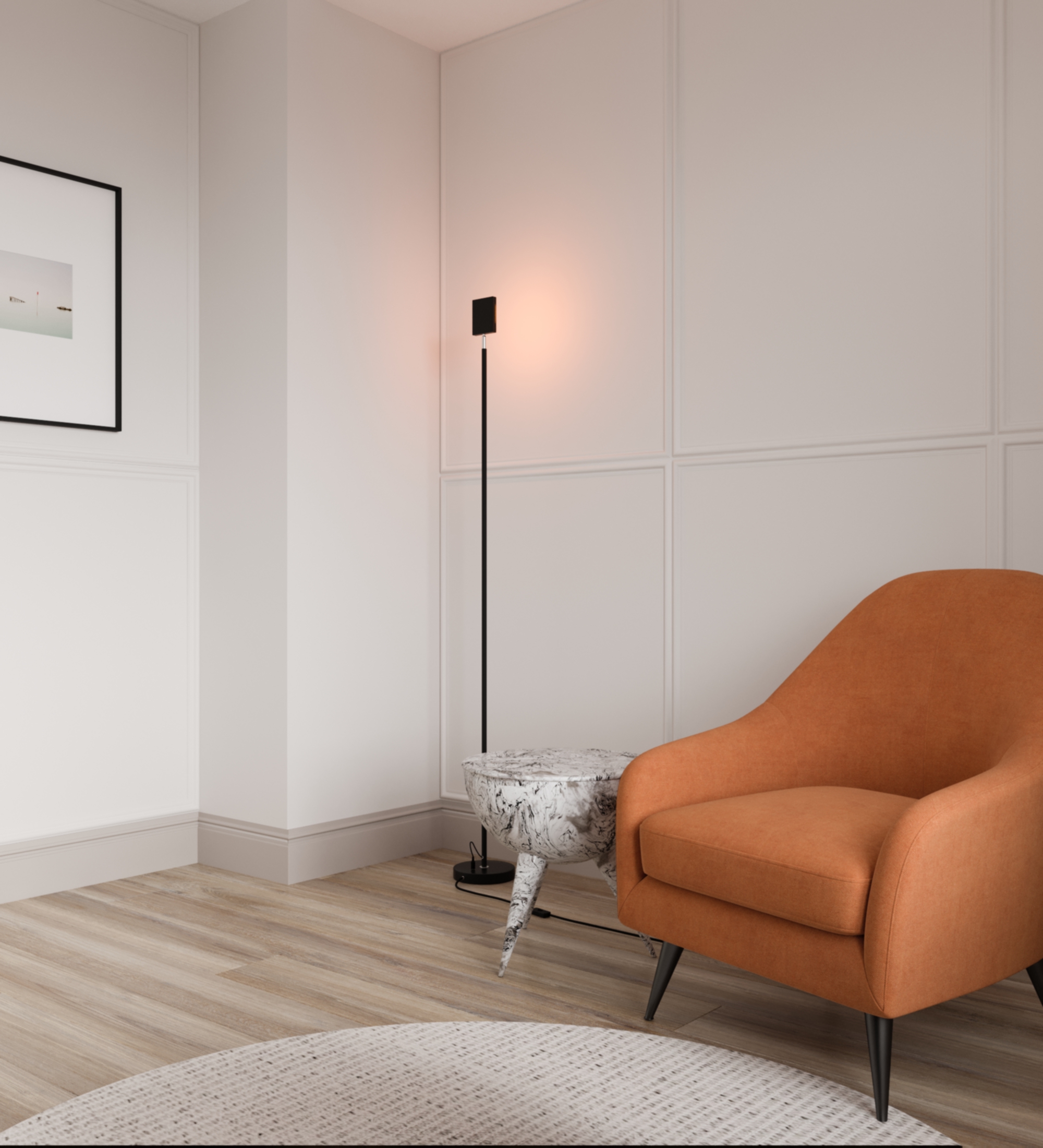 Светлый, лаконичный кабинет в пастельных тонах, с яркими креслами для проведения индивидуальных и семейных консультаций.