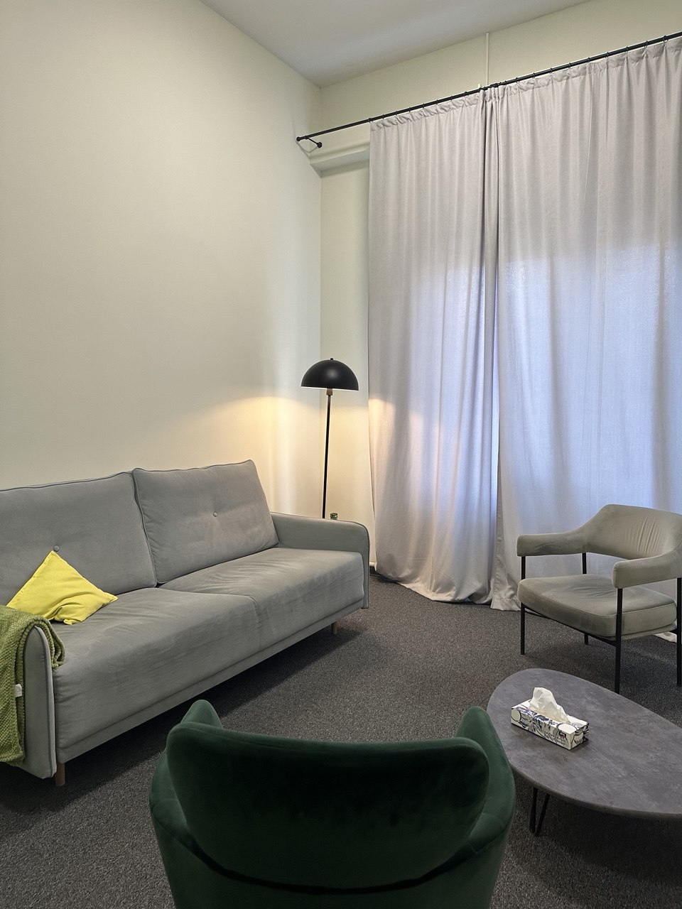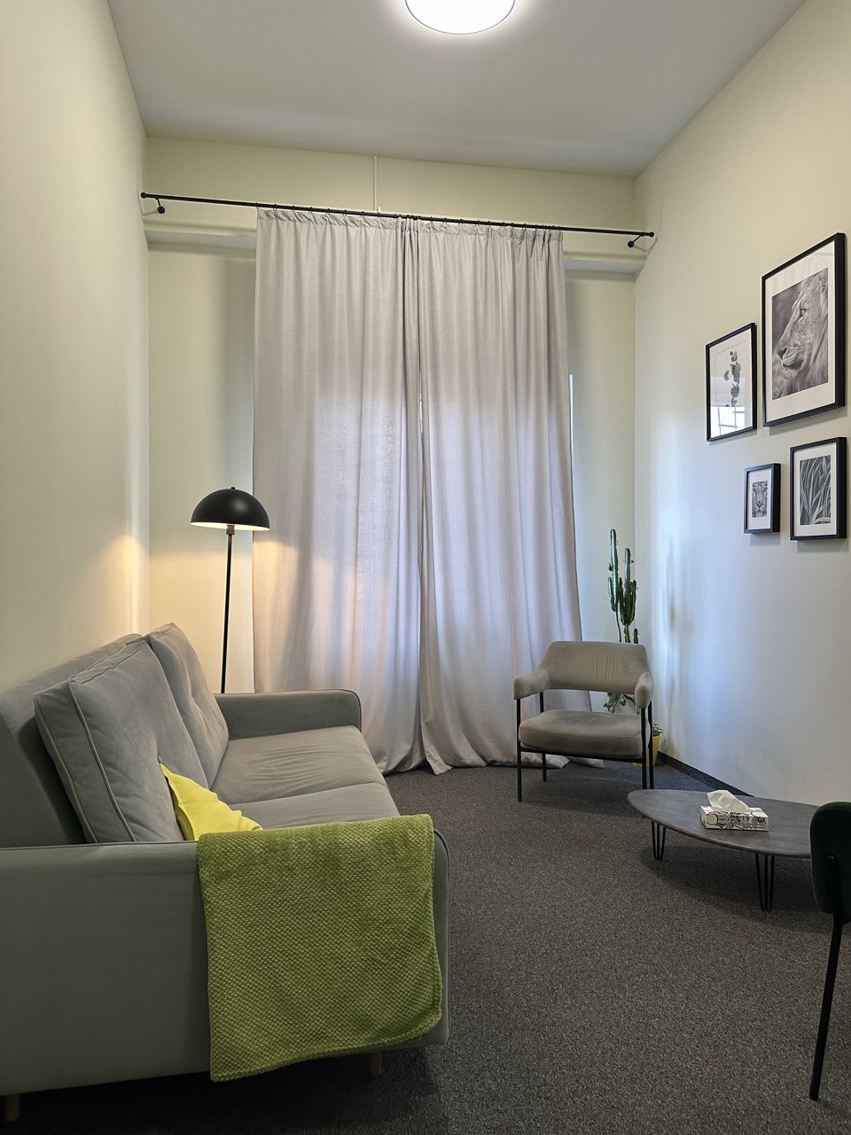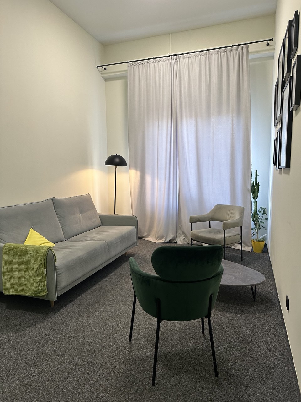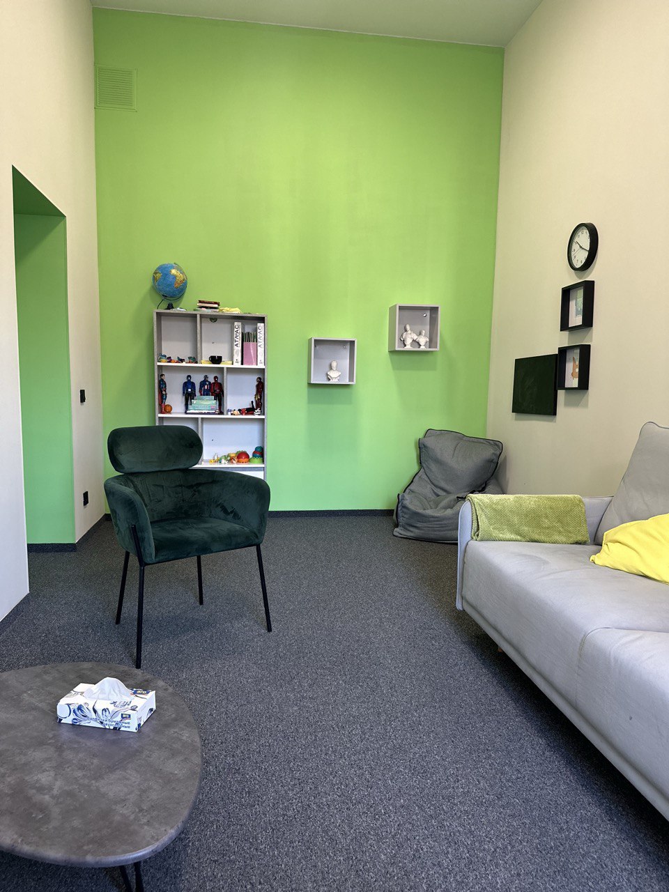 Кабинет предназначен для индивидуальной и семейной терапии, с возможностью работы за письменным столом.