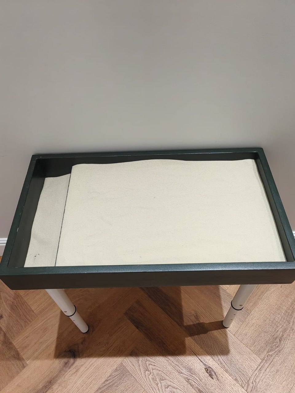 Юнгианская песочница с кинетическим песком, на телескопических ножках может быть использована в песочной терапии для детей и взрослых. Размер песочницы: 72x40x10. Наличие регулируемых по высоте ножек делает использование песочницы еще более удобным.