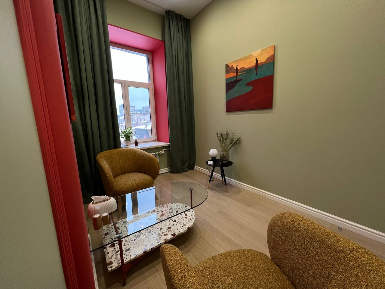 Кабинет предназначен для индивидуальной работы и семейной терапии, а также для размещения до 3-х человек.