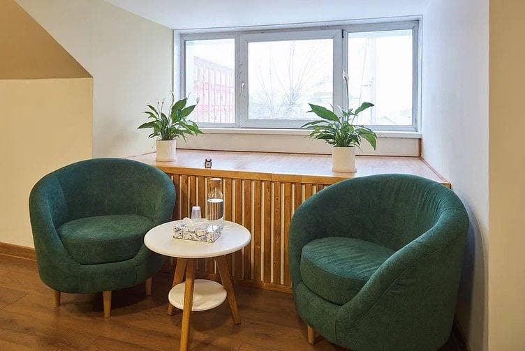 Еще в кабинете есть два кресла и журнальный столик. Это позволяет проводить индивидуальные консультации. Таким образом, кабинет может быть достаточно многофункциональным и будет интересен специалистам разных направлений.