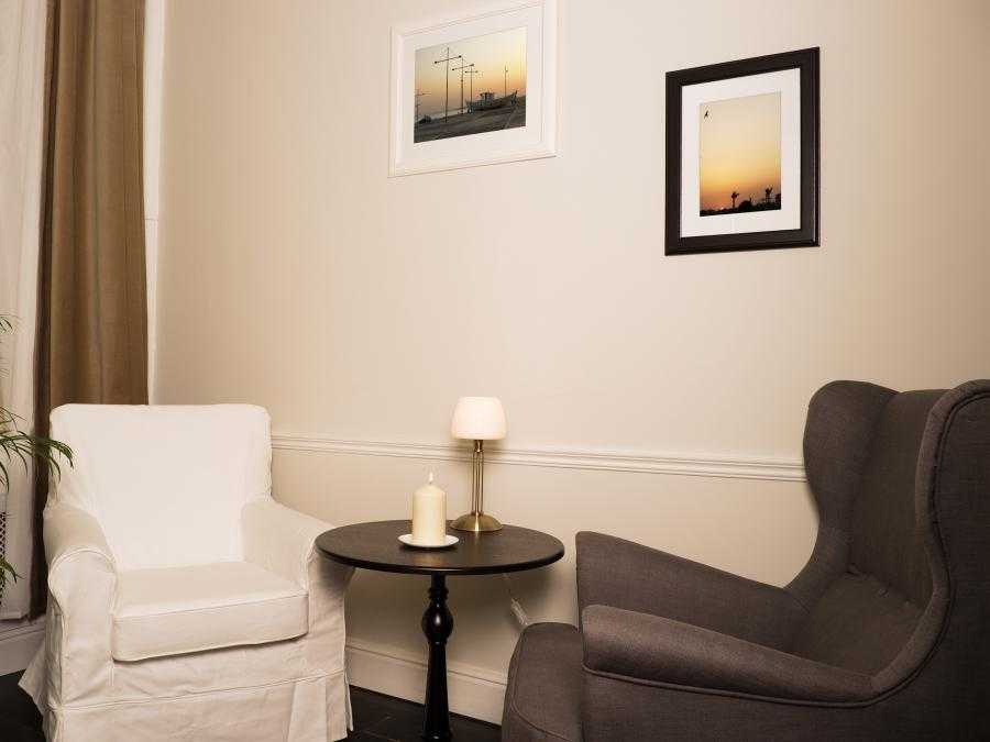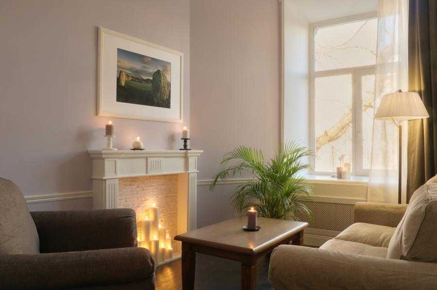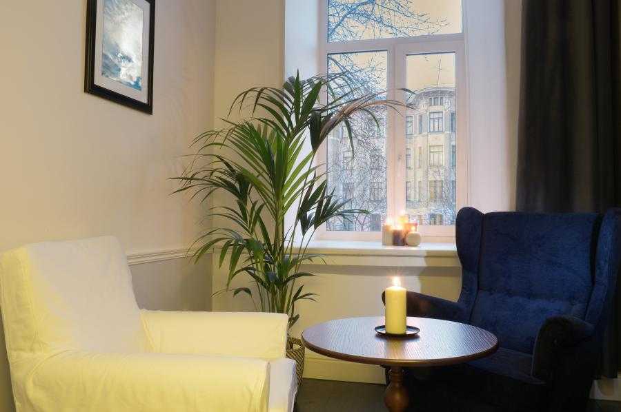 Каминный кабинет (номер 1) с просторным диваном для семейных консультаций и для психоанализа.